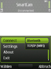 Handy, dort Bluetooth auswählen und „connecten“. (Ich gehe hier davon, aus dass Handy und Rechner schon mal gekoppelt wurden.) Dann sollte auf dem Rechner – verzögert – im Smartcam-Fenster das zu sehen sein, was die Handykamera gerade überwacht ;-). In Skype hab ich das kurz ausprobiert, dort ließ sich dann beim Videogerät obiges /dev/video0 auswählen.